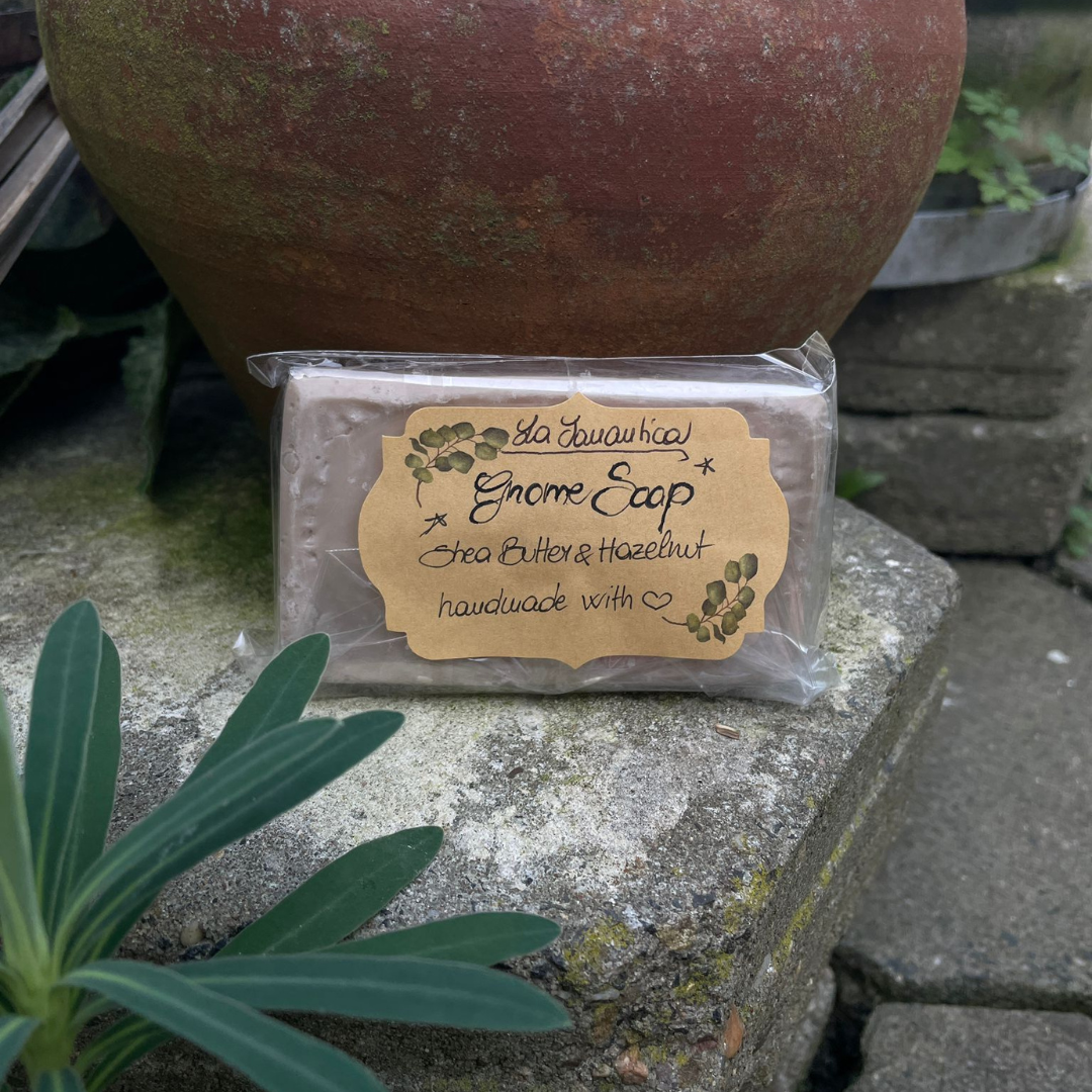 A handmade soap bar with a warm hazelnut scent and a whimsical design. Comforting, creamy and perfect as a charming gift.